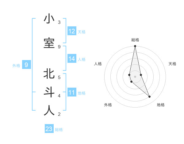 小室 北斗人さんの総格は23画の5点!