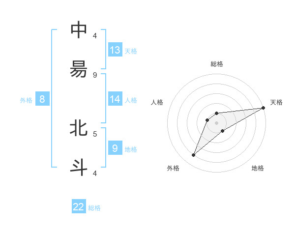 中昜 北斗さんを姓名の画数から五運を鑑定