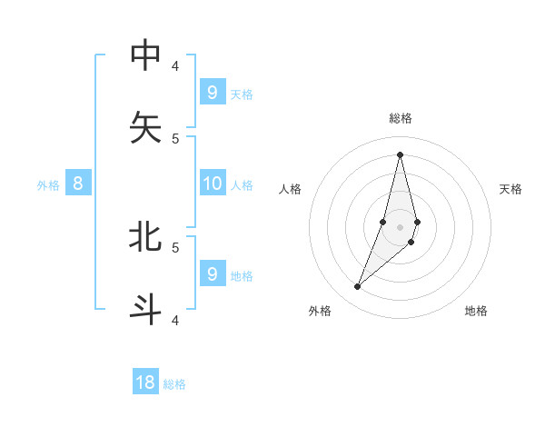 中矢 北斗さんの総格は18画の4点!