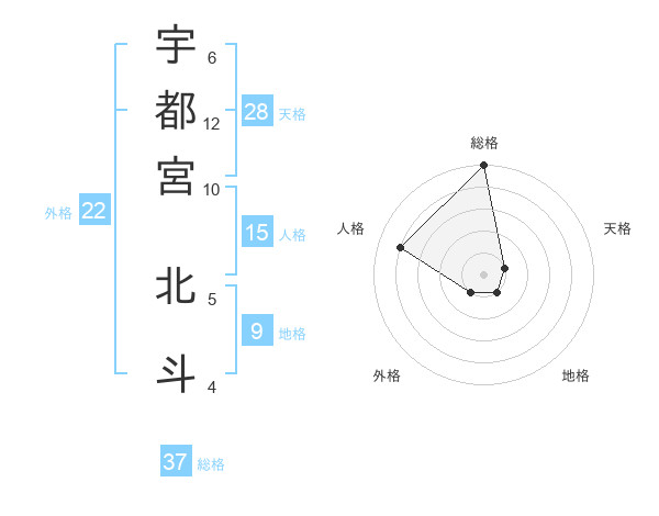 宇都宮 北斗さんの総格は37画の5点!