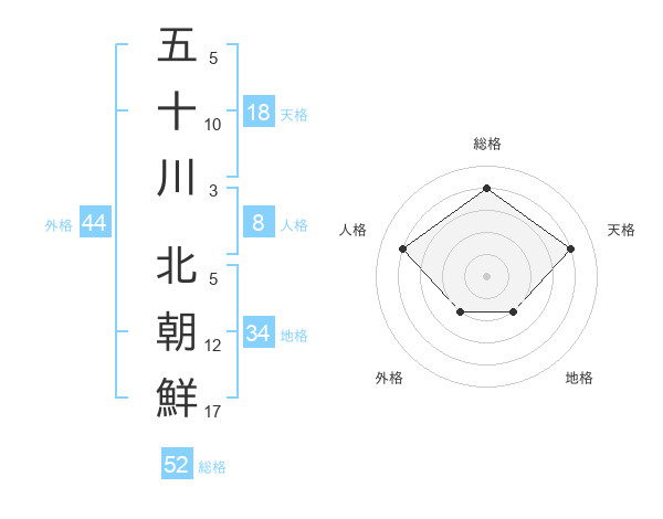 五十川 北朝鮮さんの総格は52画の4点!