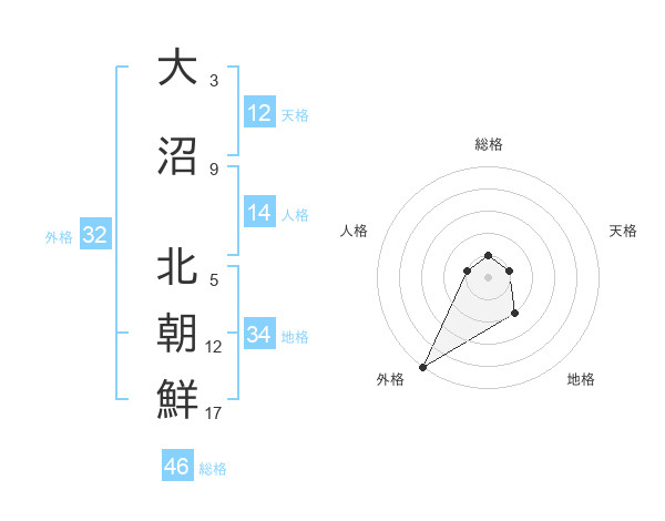 大沼 北朝鮮さんの外格は32画の5点!