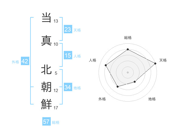 当真 北朝鮮さんを姓名の画数から五運を鑑定