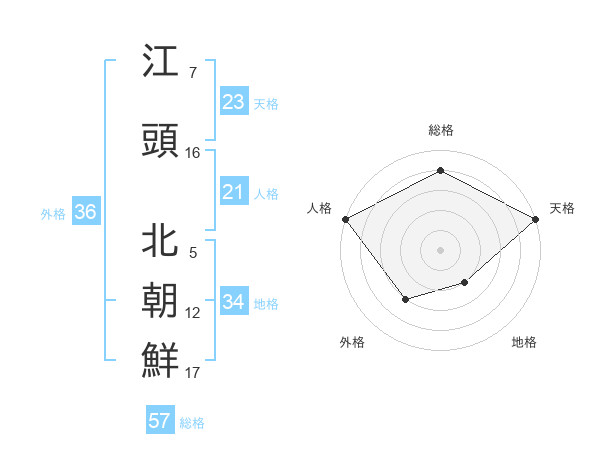 江頭 北朝鮮さんの総格は57画の4点!
