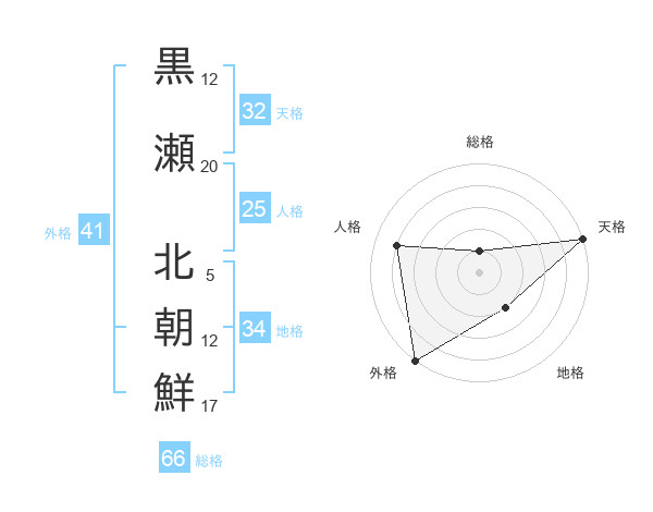 黒瀬 北朝鮮さんの天格は32画の5点!