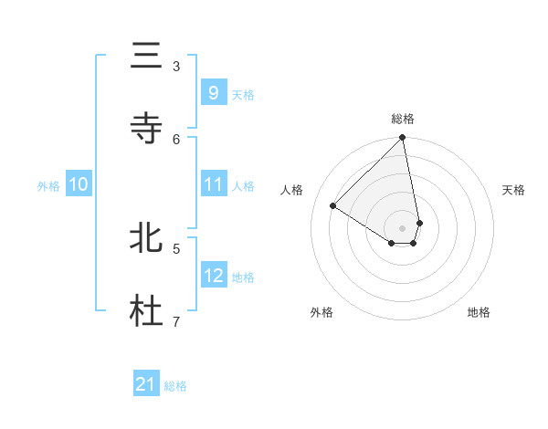 三寺 北杜さんの総格は21画の5点!