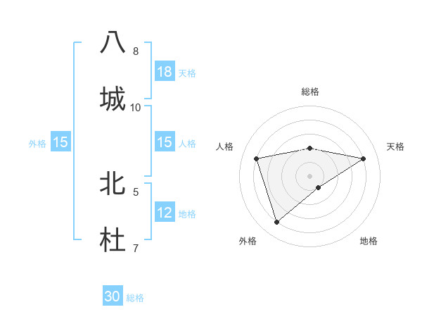 八城 北杜さんの総格は30画の2点!