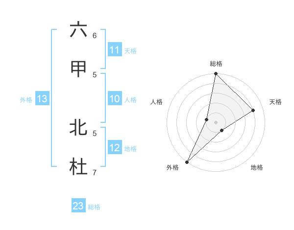六甲 北杜さんの総格は23画の5点!