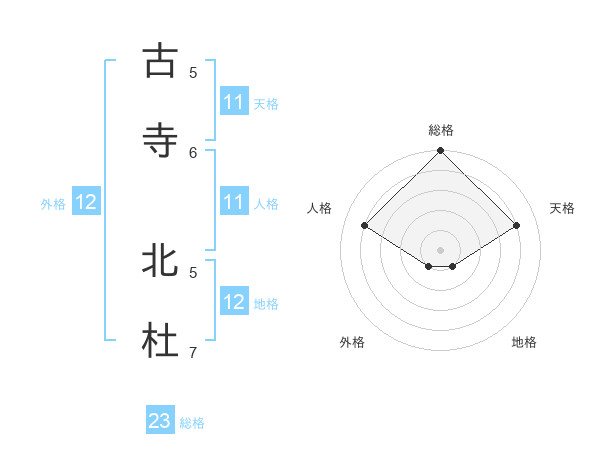 古寺 北杜さんの総格は23画の5点!