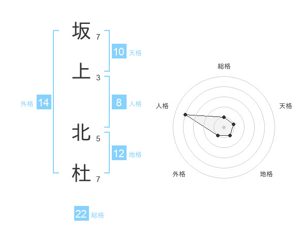 坂上 北杜さんの総格は22画の1点!
