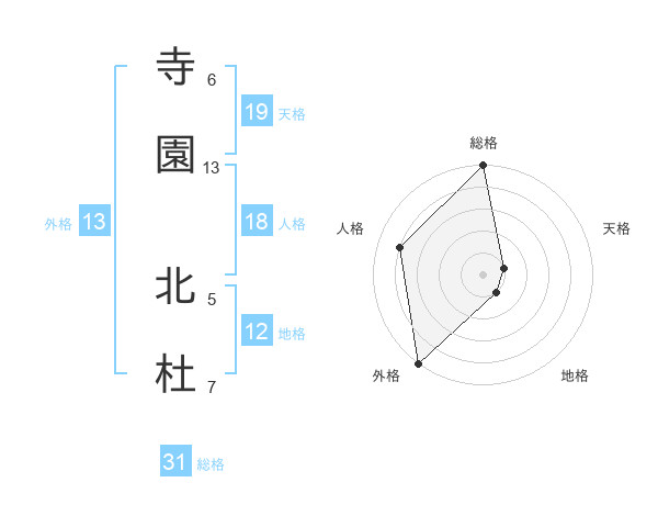 寺園 北杜さんを姓名の画数から五運を鑑定