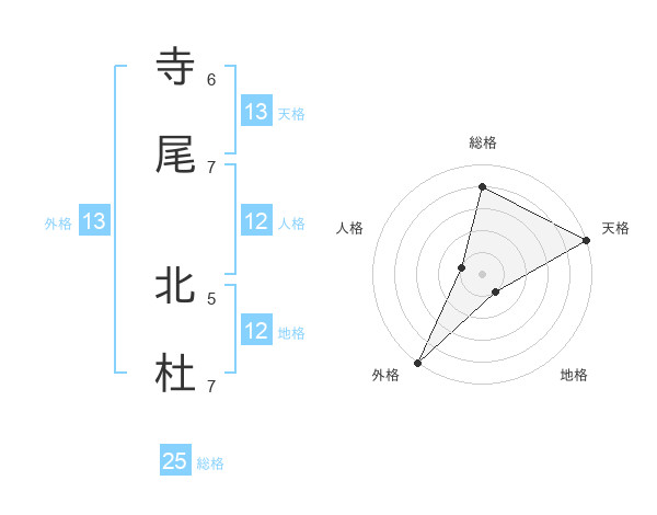 寺尾 北杜さんを姓名の画数から五運を鑑定