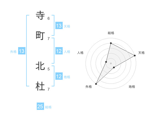 寺町 北杜さんを姓名の画数から五運を鑑定