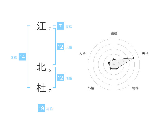 江 北杜さんの総格は19画の1点!