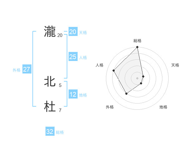 瀧 北杜さんを姓名の画数から五運を鑑定