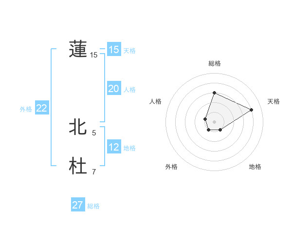 蓮 北杜さんを姓名の画数から五運を鑑定
