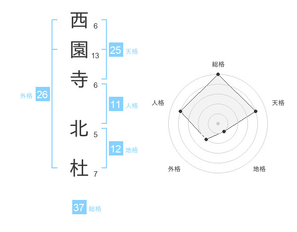 西園寺 北杜さんの総格は37画の5点!