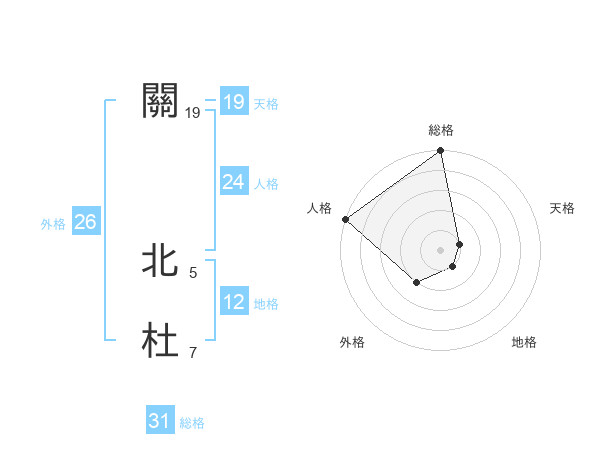 關 北杜さんの総格は31画の5点!