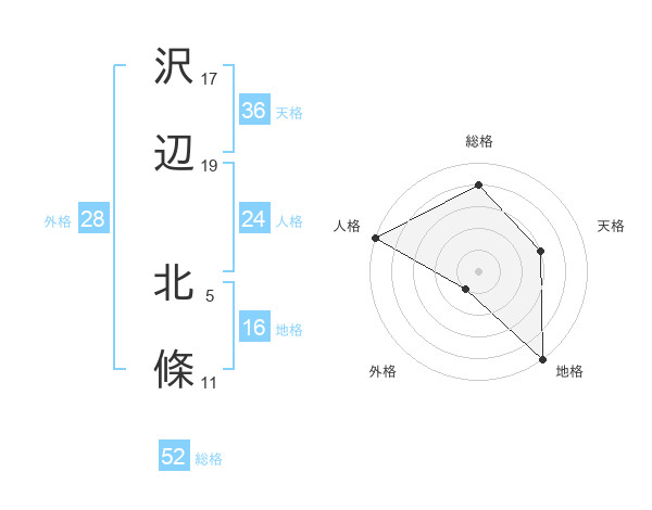 沢辺 北條さんの総格は52画の4点!