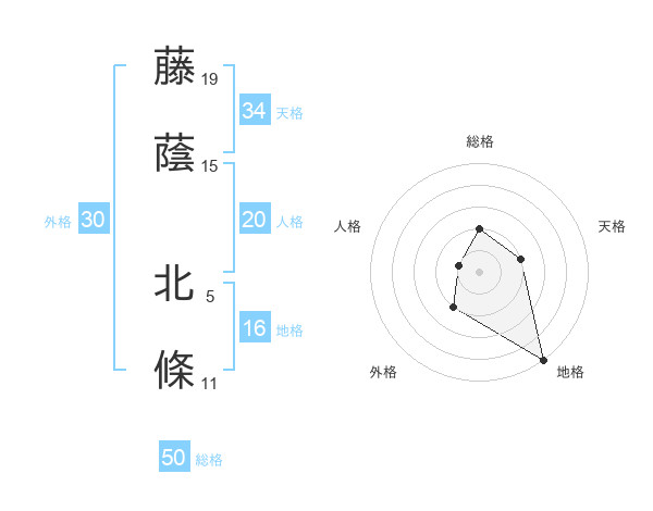 藤蔭 北條さんの総格は50画の2点!