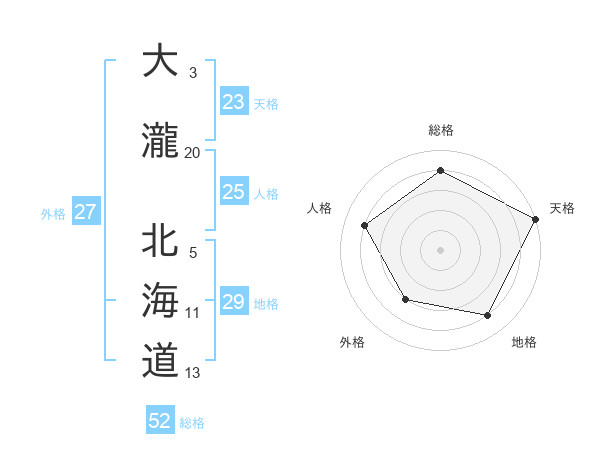 大瀧 北海道さんの総格は52画の4点!