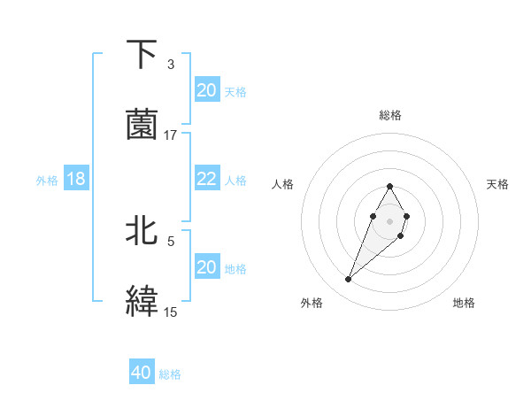 下薗 北緯さんを姓名の画数から五運を鑑定
