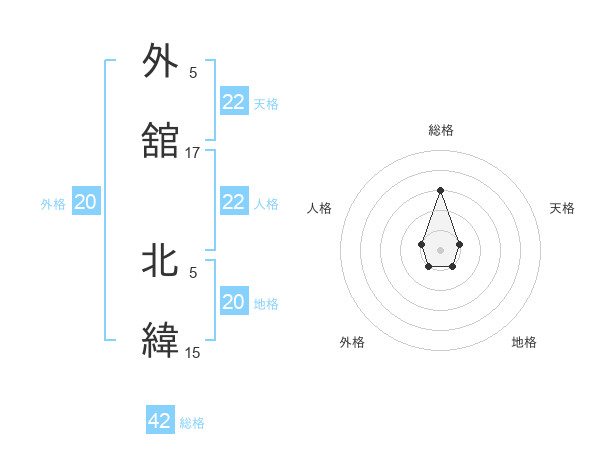 外舘 北緯さんを姓名の画数から五運を鑑定