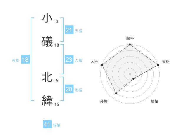 小礒 北緯さんの天格は21画の5点!