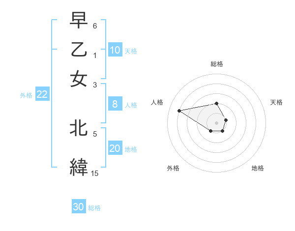 早乙女 北緯さんの総格は30画の2点!