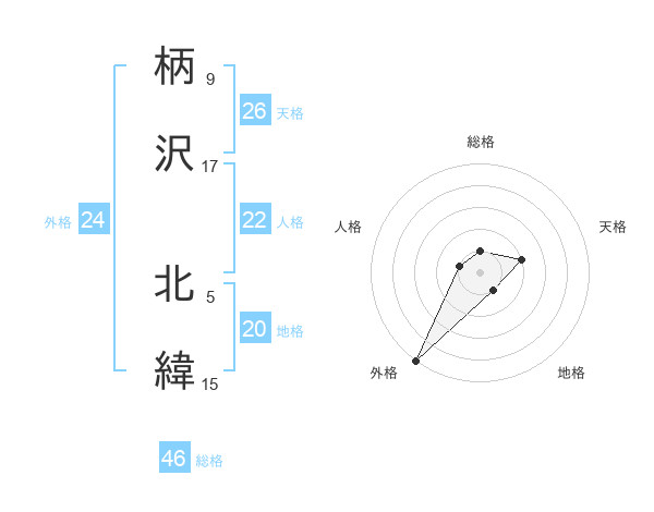 柄沢 北緯さんの天格は26画の2点!