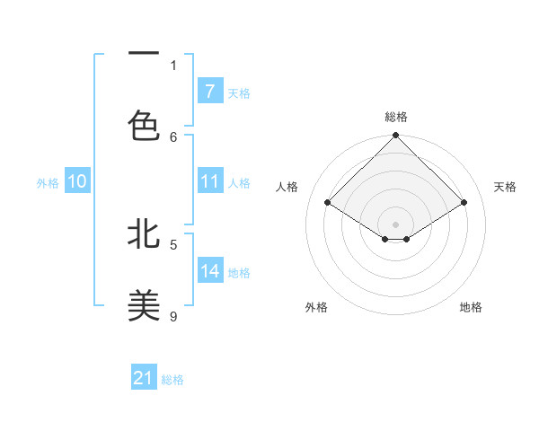 一色 北美さんの総格は21画の5点!