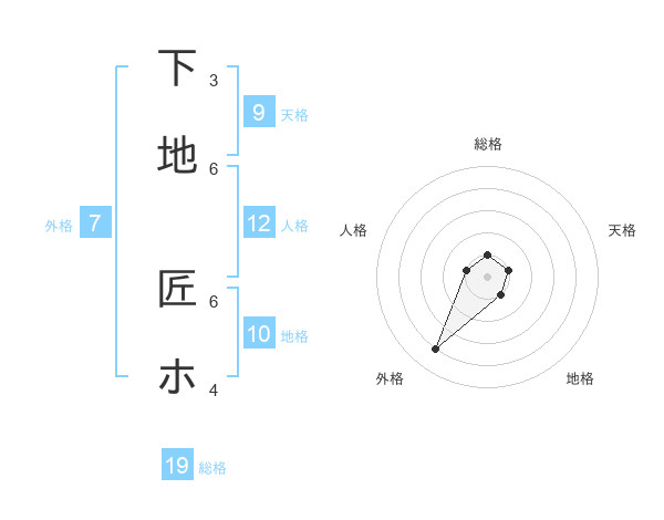 下地 匠ホさんを姓名の画数から五運を鑑定