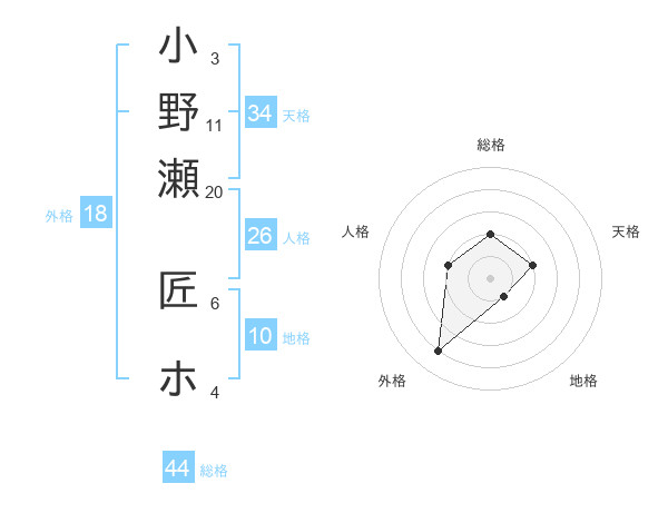 小野瀬 匠ホさんの総格は44画の2点