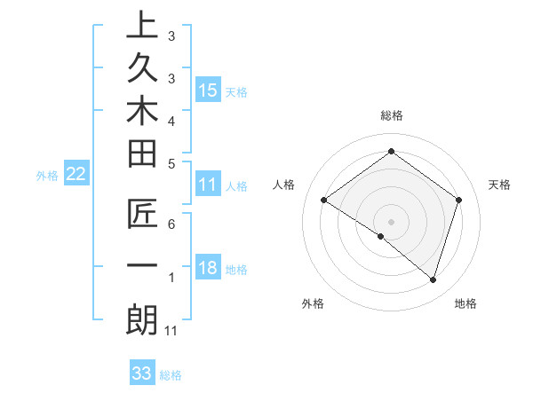 上久木田 匠一朗さんの総格は33画の4点!