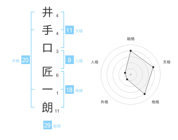 井手口 匠一朗さんの総格は29画の4点