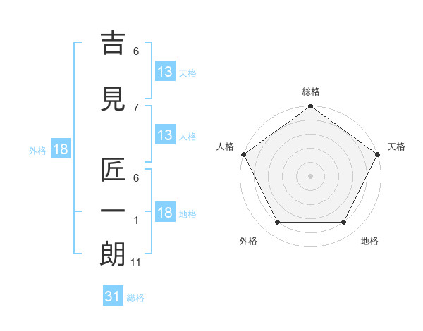 吉見 匠一朗さんを姓名の画数から五運を鑑定