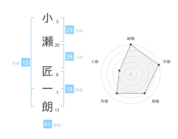 小瀬 匠一朗さんの総格は41画の5点!