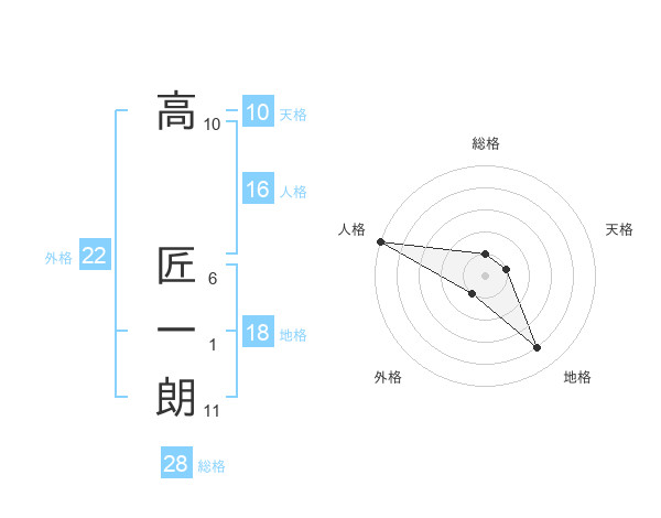 高 匠一朗さんの外格は22画の1点!