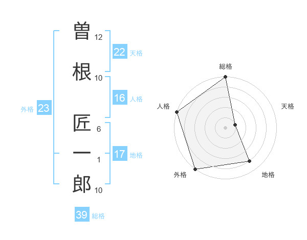 曽根 匠一郎さんを姓名の画数から五運を鑑定