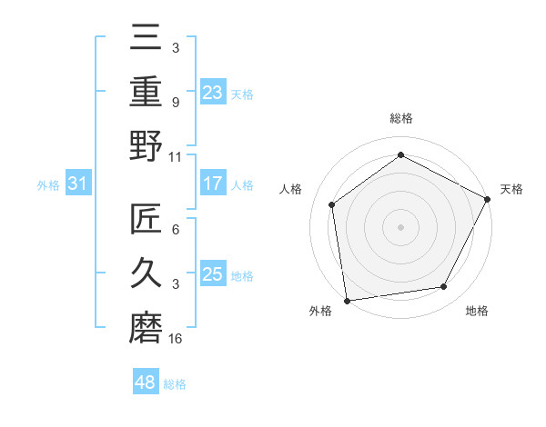 三重野 匠久磨さんを姓名の画数から五運を鑑定