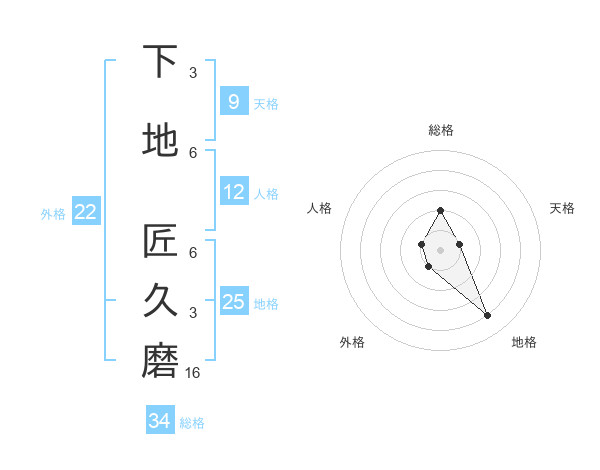 下地 匠久磨さんを姓名の画数から五運を鑑定