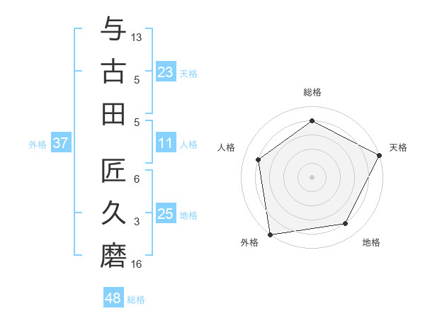 与古田 匠久磨さんを姓名の画数から五運を鑑定