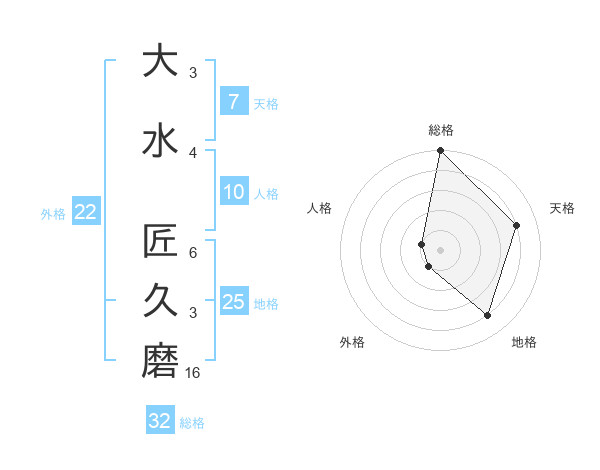 大水 匠久磨さんの総格は32画の5点!