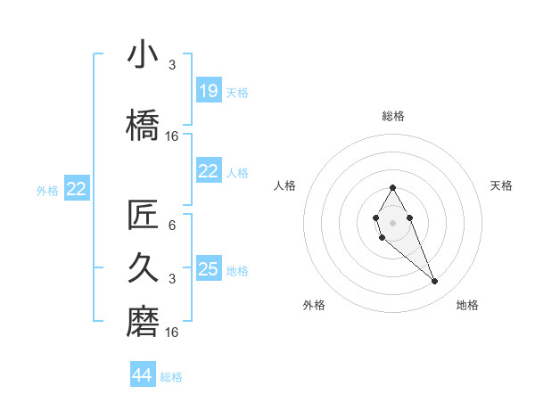 小橋 匠久磨さんを姓名の画数から五運を鑑定