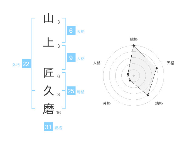 山上 匠久磨さんを姓名の画数から五運を鑑定