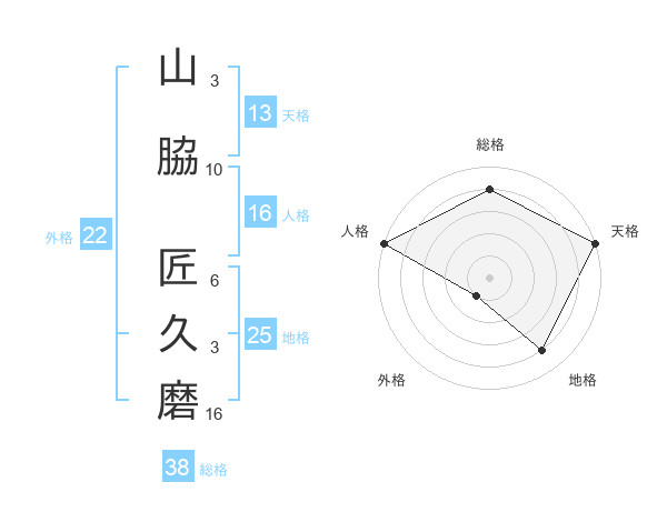 山脇 匠久磨さんの総格は38画の4点!