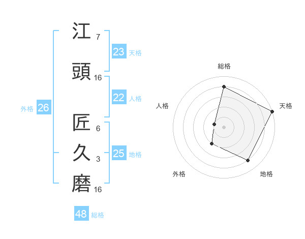 江頭 匠久磨さんを姓名の画数から五運を鑑定
