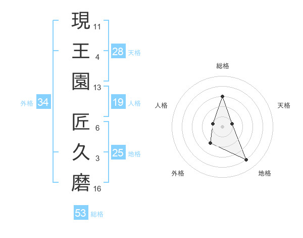 現王園 匠久磨さんの総格は53画の3点!