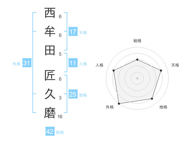 西牟田 匠久磨さんを姓名の画数から五運を鑑定
