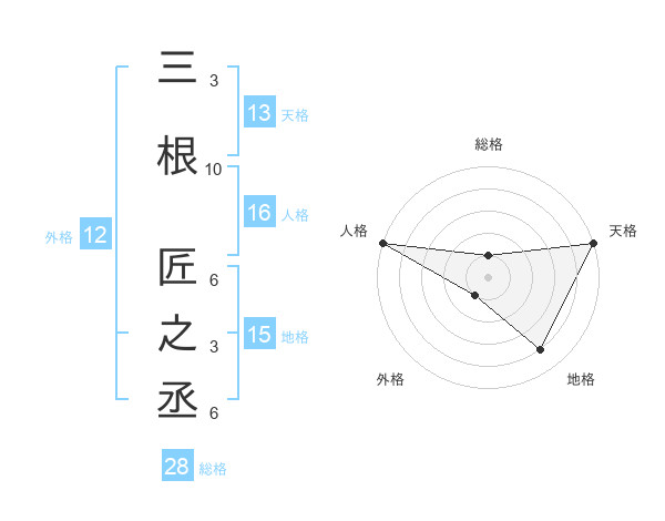 三根 匠之丞さんの天格は13画の5点!